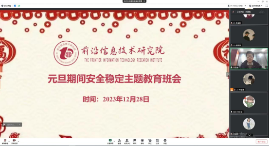 2023年12月28日晚上8点,公司召开“元旦期间安全稳定主题教育班会”,此次班会采用线上的形式,由刘建美、刘长慧老师主持,全体研究生参加。