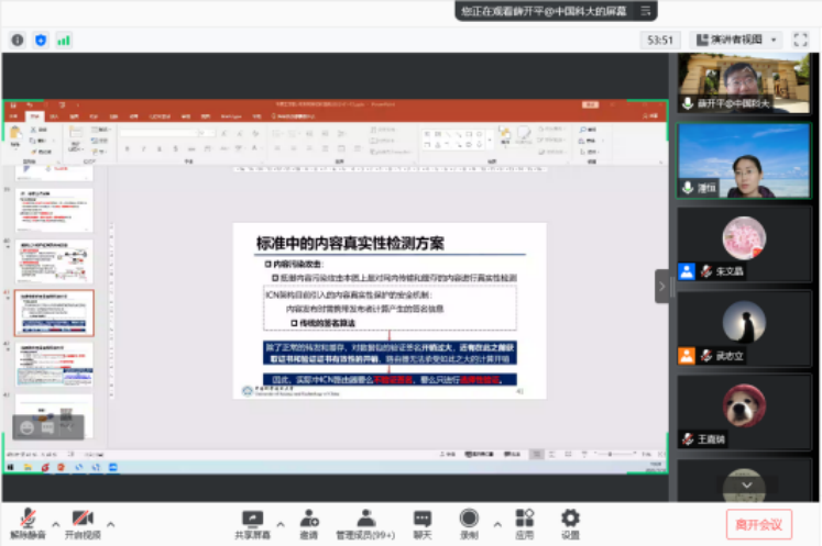 2022年1月12日上午,应前沿信息技术研究院邀请,中国科学技术大学薛开平教授以腾讯线上会议的形式,为公司师生做了一场题为“信息中心网络中的数据安全访问控制研究进展”的学术报告。讲座由前沿信息技术研究院副经理潘恒主持,公司师生、相关公司及我省其他高校教师在线聆听了报告。