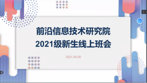 2021年9月8日晚8点,前沿信息技术研究院召开2021级研究生新生线上班会。出席班会的老师有研究院副经理潘恒老师、研究生秘书刘长慧老师、员工党支部书记朱文晶老师、网络舆情中心夏冰老师、先进计算中心王磊老师、人工智能中心王秋实老师。班会由刘长慧老师主持。2021级硕士研究生参加了此次班会。