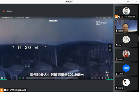 会上,刘长慧老师首先明确召开此次主题班会的目的和意义。她表示,在经历了“7·20郑州特大暴雨”和反弹的疫情之后,看到同学们都能够平安健康的参加此次班会,她发自内心的感到高兴,并希望大家珍惜当下,做好自身防护,并在此次班会中与他人分享疫情灾情中的感受,把灾难当教材,与祖国共成长。