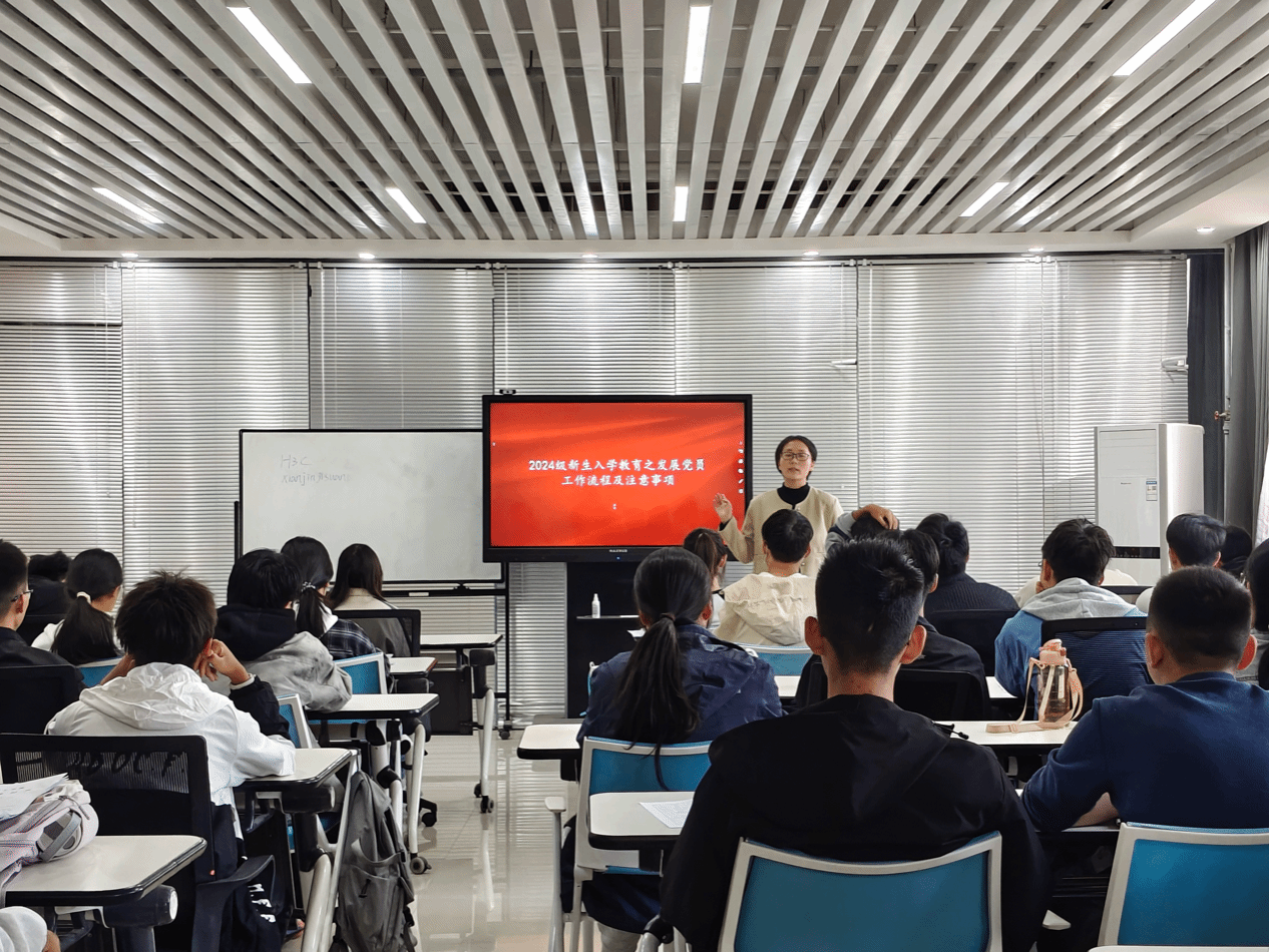 牛利月老师从以下五方面着重强调了入党的流程。一是入党积极分子培养和确定材料;二是发展对象的确定和考察;三是考察的对象和标准;四是预备党员的接收;五是预备党员的教育考察和转正。既加深了新生对党的认识,也引导了新生树立正确的入党动机。