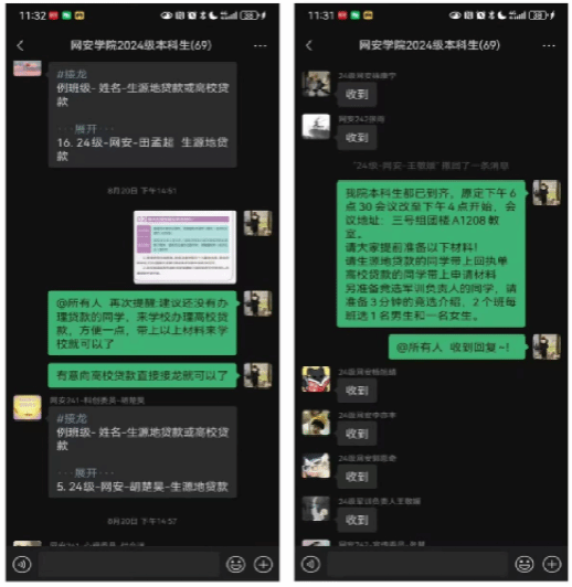 线上,郭政良通过腾讯会议召开国家助学贷款专项会议,介绍助学贷款的办理信息,如助学贷款提额、免息、受理公告、续贷远程受理操作流程、助学贷款app操作指引、还款指南、贷后须知等,帮助员工和家长全面了解贷款申请条件和办理流程等信息,进一步扩大贷款申请宣传范围,确保贷款办理“应晓尽晓”。此外,通过接龙的方式,摸清本年度助学到款的人数规模。线下,利用新生入学第一次班会收齐生源地贷款回执以及高校助学贷款的申请材料,为接下来的工作奠定基础。