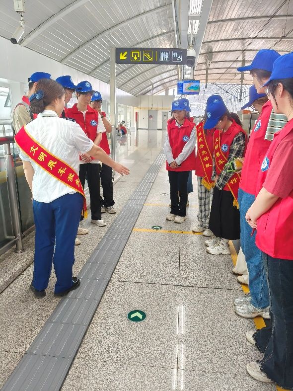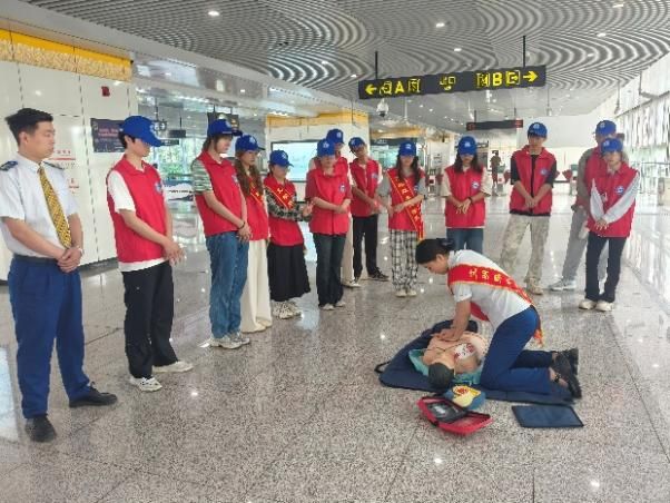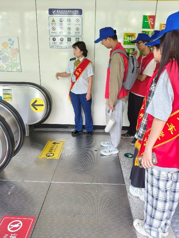 活动伊始,志愿者在工作人员指导下学习了电梯故障响应机制和紧急制动按钮操作,以及地铁门防夹联动装置的应急操作规范,并通过情景模拟学习了乘客安全疏导技巧。并特别设置急救技能专项培训,工作人员采用"理论讲解+人体模型实操"方式,系统传授AED设备操作要领,志愿者全员通过心肺复苏模拟考核,初步具备基础急救能力。在实践环节,志愿者整理了站外非机动车乱停现象,协助维护交通秩序,发放《地铁出行防骗指南》,普及网络购票安全知识,并指导老年乘客安装官方反诈APP。