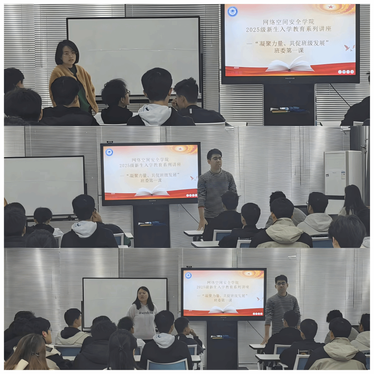朱文晶围绕课堂考勤、教学信息传达等核心职责,为学习委员指明工作方向,并就“找不到教室”等常见问题提供解决方案,鼓励大家勤于思考,探索多元化工作方法。刘长慧采用情景模拟方式,与多位班委现场互动,通过模拟常见工作场景,强调灵活应变、解决问题的重要性。郭政良进一步明确了各班委的岗位职责,指出班委是连接公司与同学的关键纽带,承担着服务同学、凝聚班级的重要使命,勉励大家珍惜实践机会,在服务中锻炼能力、收获成长